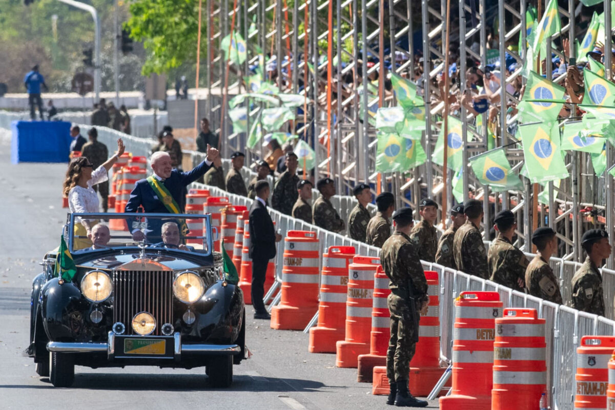 O presidente Luiz Inácio Lula da Silva (PT) passando em revista às tropas a bordo do tradicional Rolls Royce