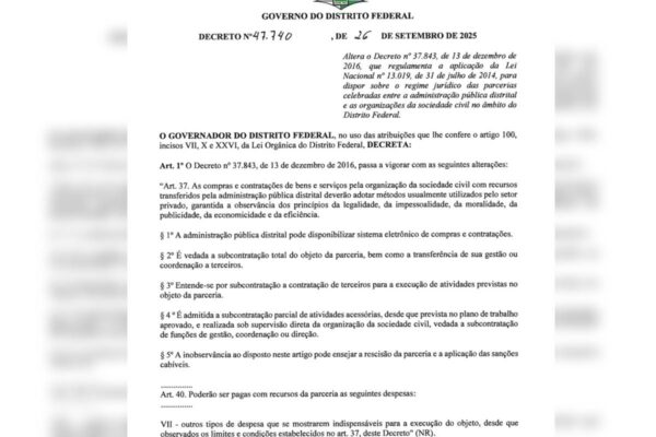 Byadminsetembro 29, 2025O Governo do Distrito Federal (GDF) alterou o decreto que trata das contratações com organizações da sociedade civil (OSCs) após sugestão do Ministério...