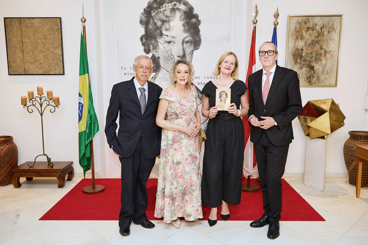 O embaixador da Áustria no Brasil, Stefan Scholz, e a embaixatriz Angelika Scholz abriram as portas da residência oficial, na última sexta-feira (22/8), para a apresentação de Imperatriz Leopoldina, uma ficção, o novo livro da escritora Clotilde Chaparro, que revisita a trajetória da primeira imperatriz do Brasil em uma narrativa literária envolvente.