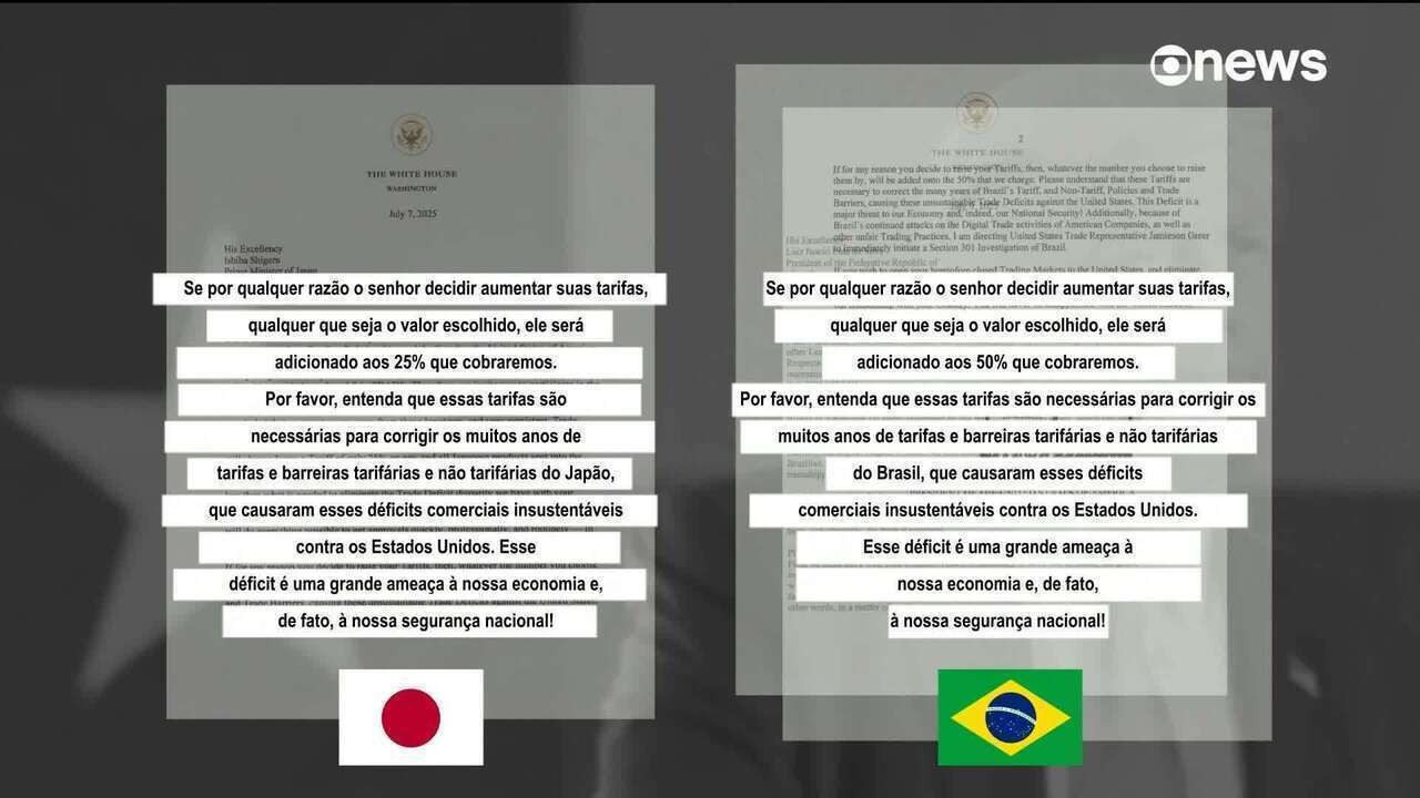 Em cartas anteriores a outros países, Trump usava um texto padrão que mudava apenas o nome do destinatário e o valor da tarifa. Essas versões afirmavam que os EUA estariam dispostos a manter relações comerciais, mas que tarifas eram necessárias para tornar as trocas mais justas e equilibradas.